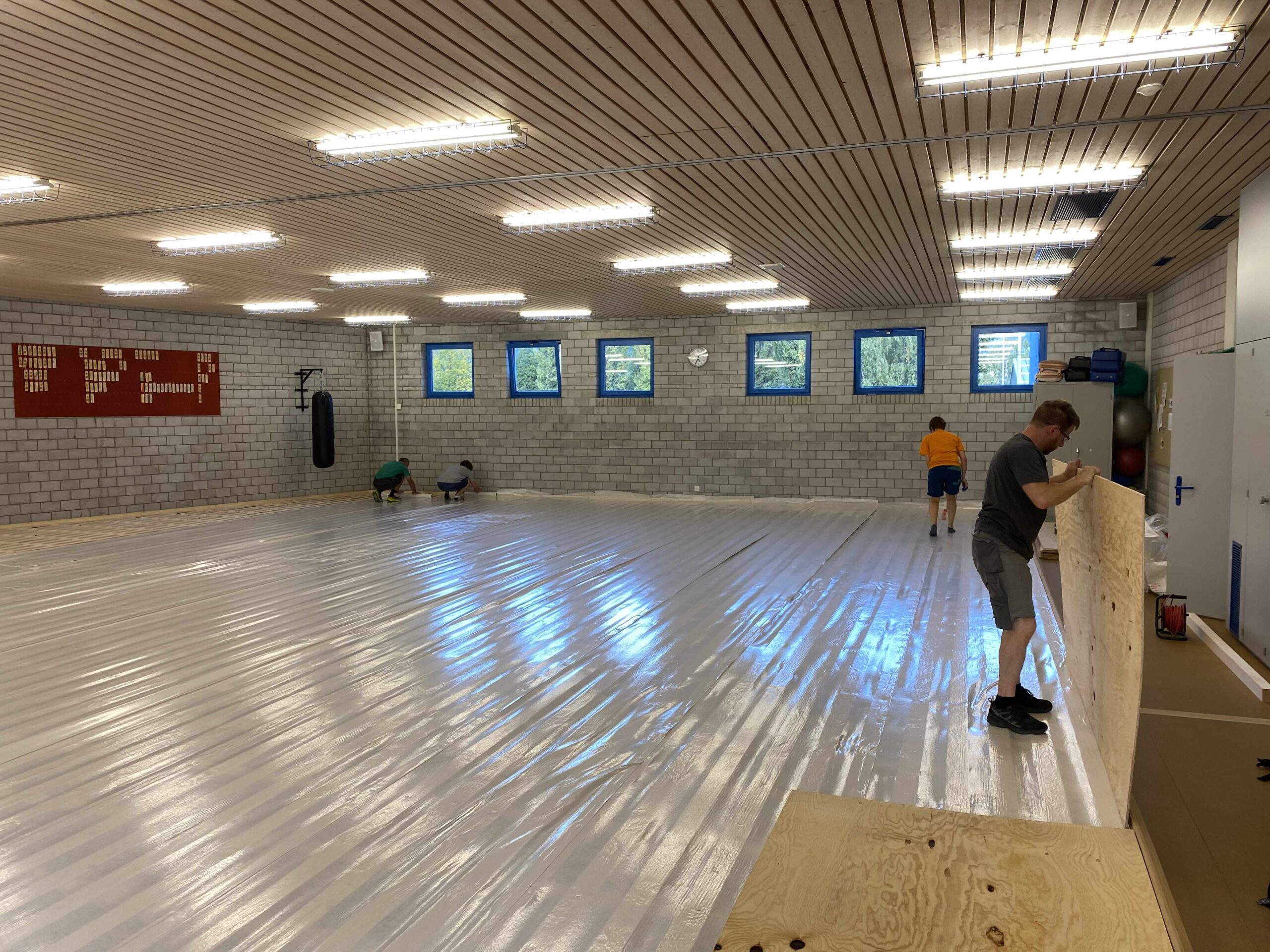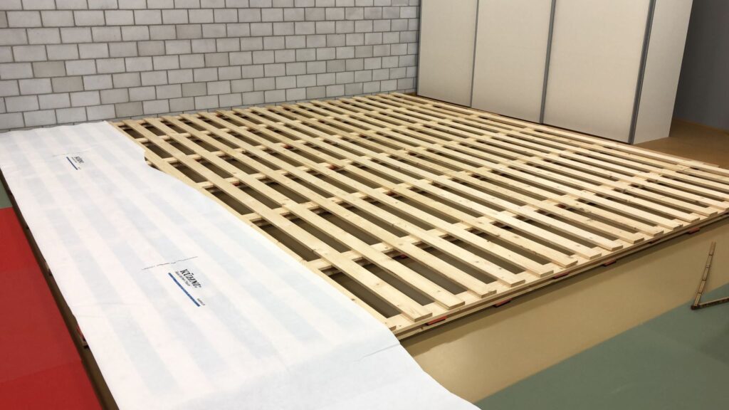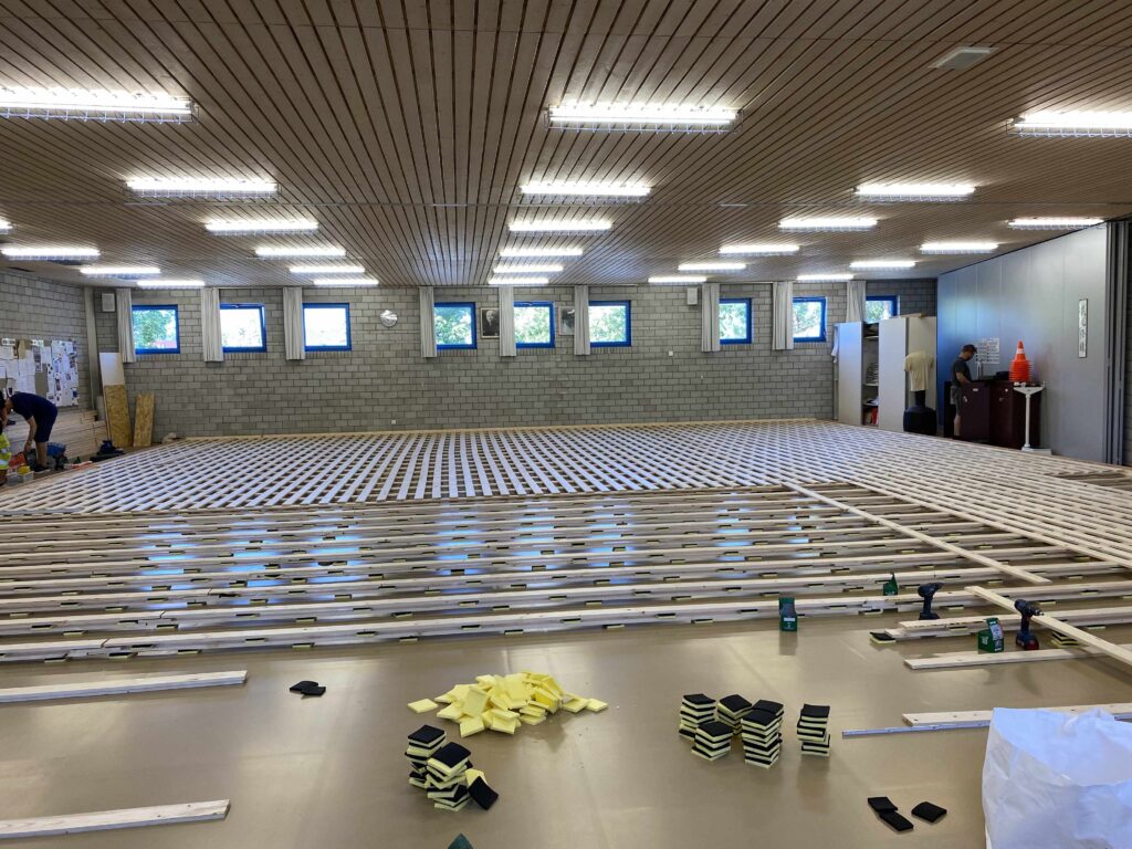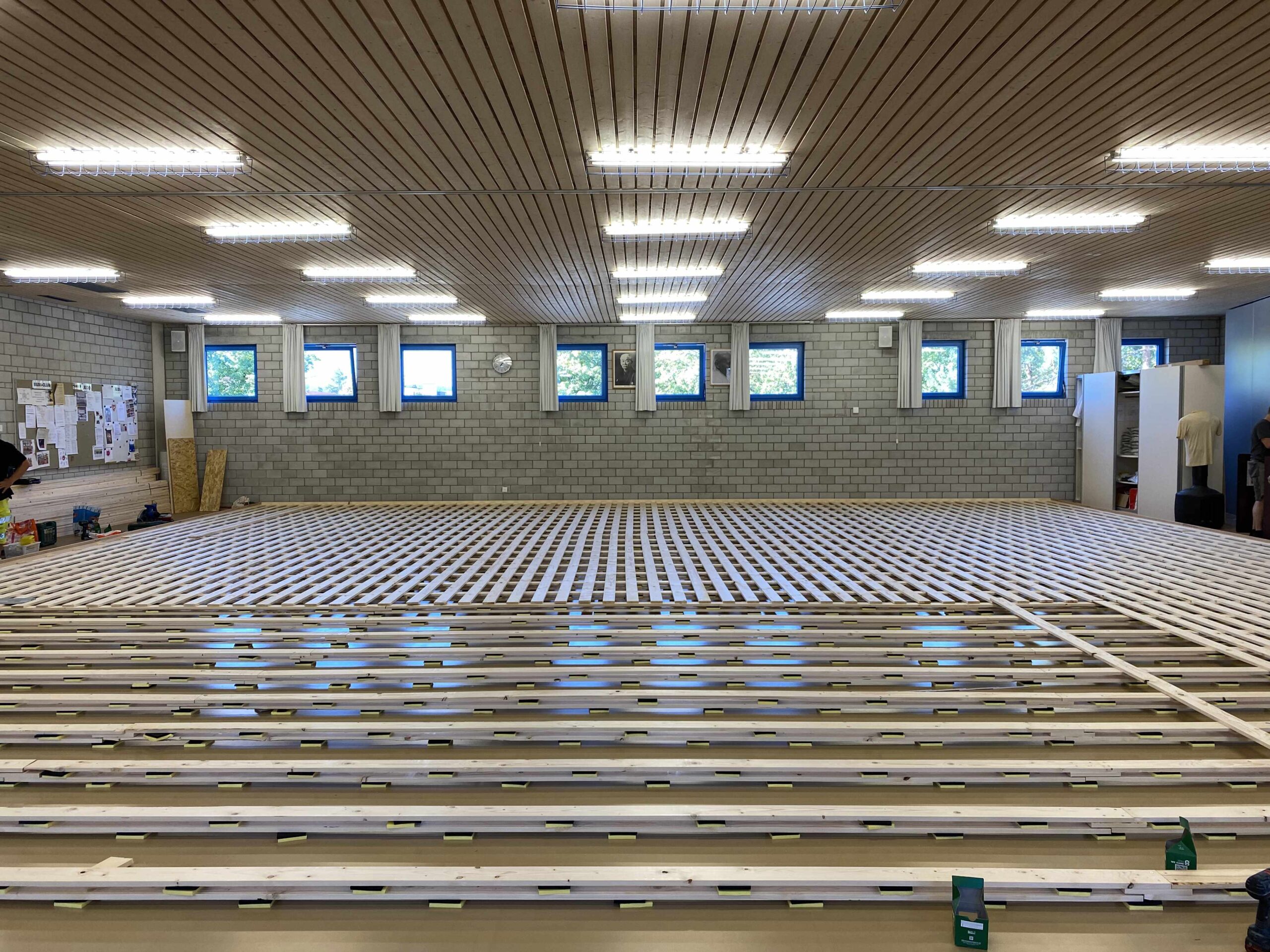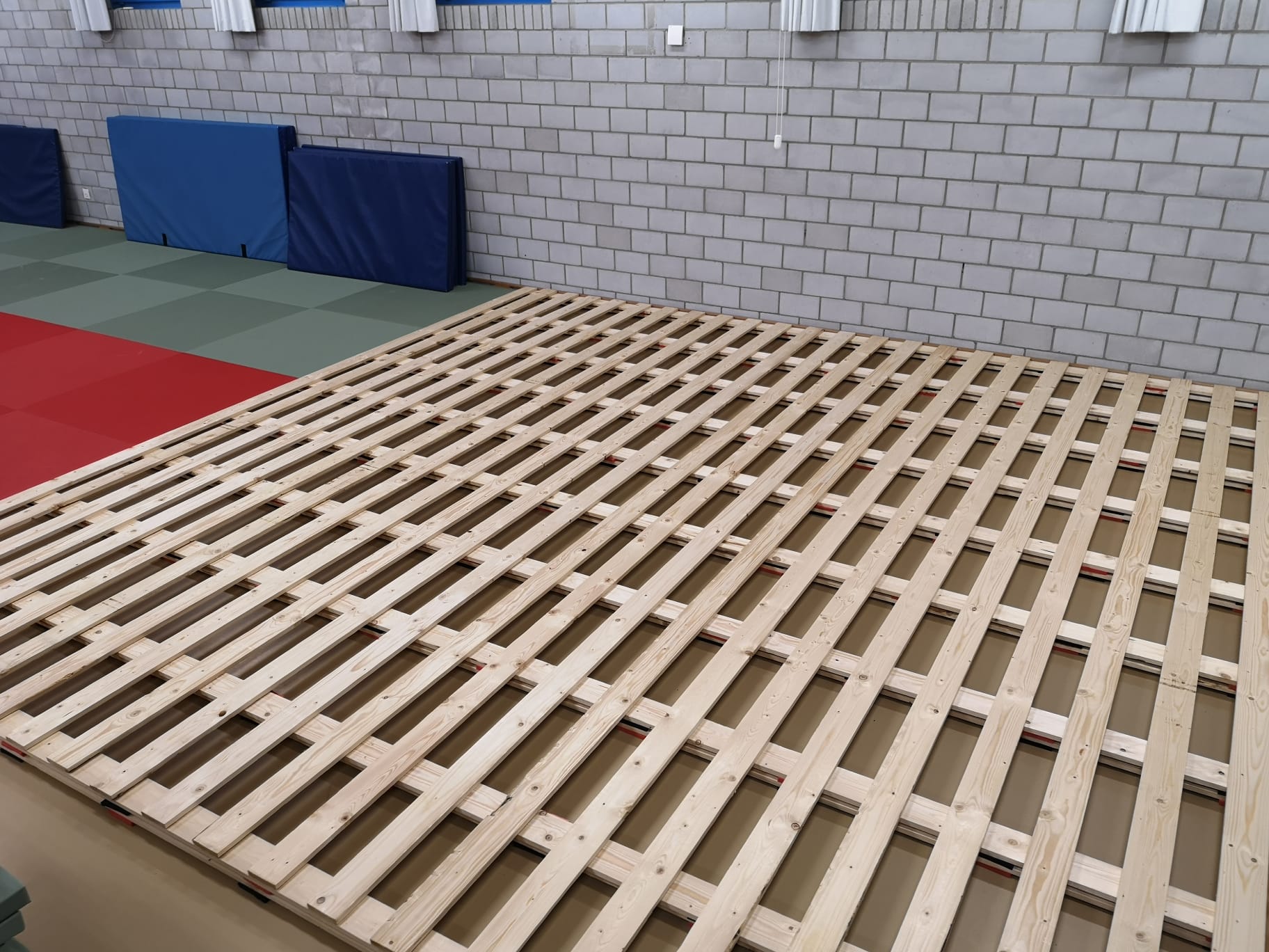 Der Schwingboden ist eine schwingende Holzkonstruktion, welche durch einfach Gummi-Elemente Stürze abfedert und das Rollen sowie das Fallen wesentlich körperschonender macht.